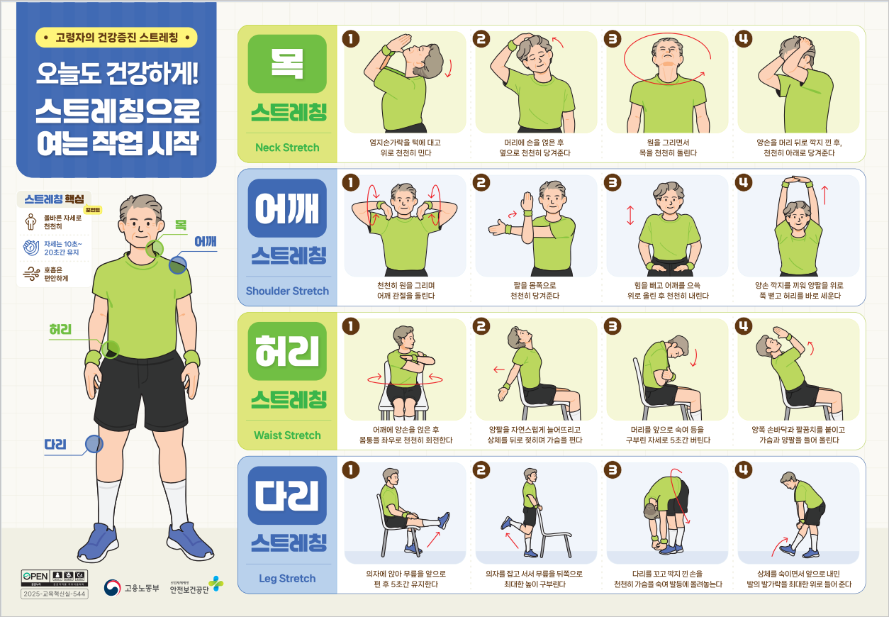 안전보건공단 산업안전포털에 [고령자의 건강증진 스트레칭 포스터]가 게시되었으니