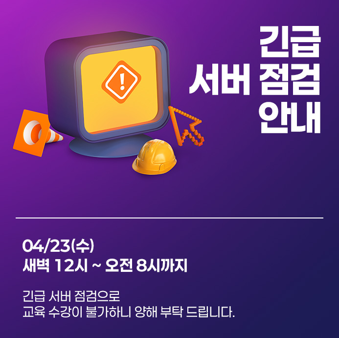 으로 04/23(수) 새벽 12시 ~ 오전 8시까지 교육 수강이 불가하니 양해 부탁 드립니다.